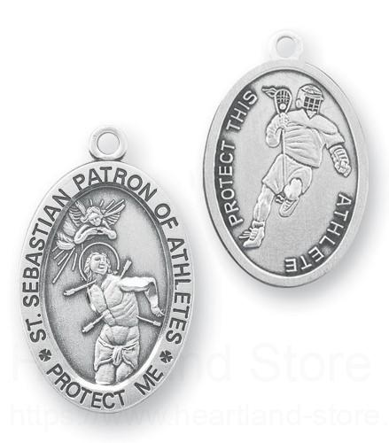 About this Oval Men's St. Sebastian Lacrosse Necklace With Chain + 24" 3mm Stainless Steel Endless Chain