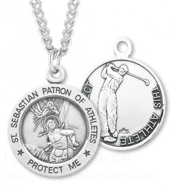 About this Round Men's St. Sebastian Golf Necklace With Chain + 24" 3mm Stainless Steel Endless Chain