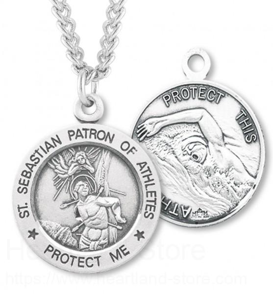 About this Round Men's St. Sebastian Swimming Necklace With Chain + 24" 3mm Stainless Steel Endless Chain