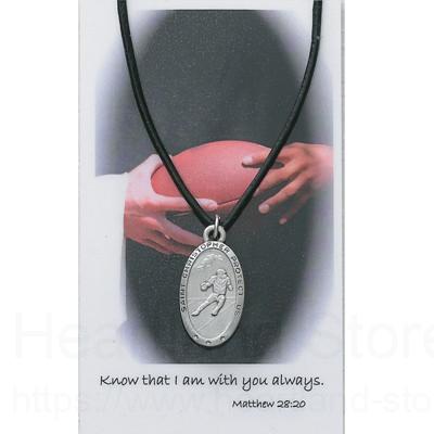 About this Boy's St. Christopher Football Medal with Leather Chain and Prayer Card Set
