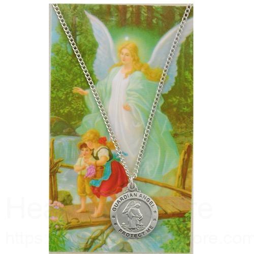 This Guardian Angel pendant is paired with a laminated Guardian Angel prayer card. This medallion shows a beautiful image of a Guardian Angel leading and watch over a young child. The pendant displays the following the features;