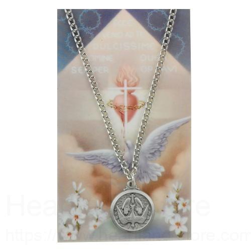 This pendant and prayer card set will make for a special confirmation gift. The medallion displays a beautiful dove descending between open hand with a small cross at the top. The Holy Spirit pendant has the following features;