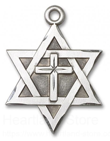 This large Star of David with Cross Pendant is made of sterling silver and is 1ΒΌ" high.