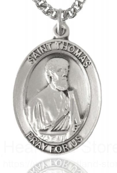This Saint Thomas the Apostle Pendant is made of genuine .925 sterling silver and is approximately the size of a quarter.