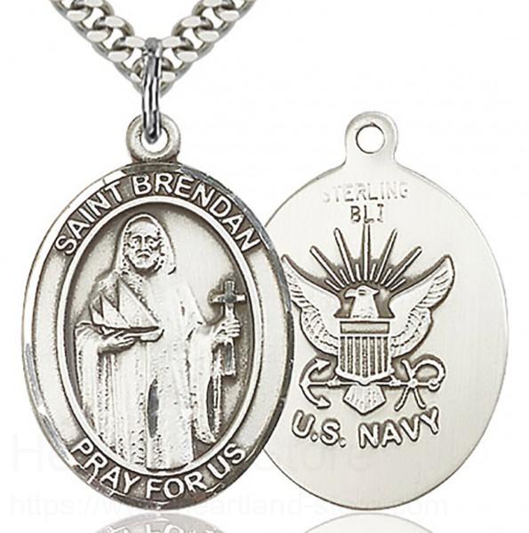 About this St. Brendan the Navigator/ Navy Medal, Sterling Silver, Large + 24" 2.4mm Rhodium Plate Endless Chain