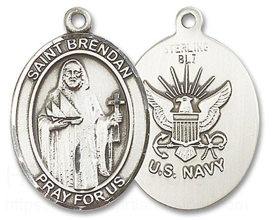 This St. Brendan Oval Navy Medal is a great addition to anybody who is in the Navy or would like to protect a loved one. The front of the medal depicts an image of St. Brendan with the words around the image reading "St. Brendan Pray for Us". The back of the medal depicts the U.S Navy emblem.