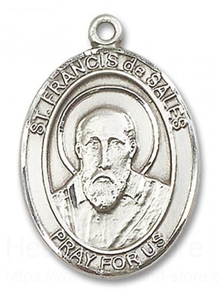 St. Francis De Sales Medal This St. Francis De Sales Pendant is made of sterling silver and is approximately the size of a quarter.