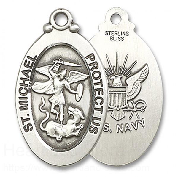 About this St. Michael Navy Medal, Sterling Silver + No Chain