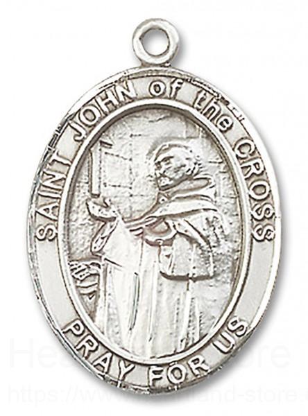 St. John of the Cross Medal This St. John of the Cross Pendant is made of sterling silver and is approximately the size of a quarter. Medal is gift boxed in a beautiful velvet hinged jewelry gift box.