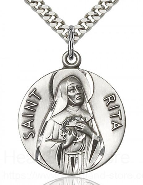 About this St. Rita of Cascia Medal, Sterling Silver + 24" 2.4mm Rhodium Plate Chain + Clasp