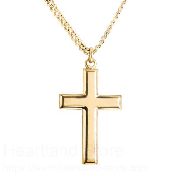 About this Men's Gold Filled Beveled Edge Cross Pendant + 24" 2.4mm Gold Plated Chain + Clasp
