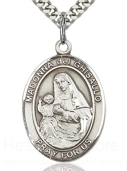 About this St. Madonna Del Ghisallo Medal, Sterling Silver, Large + 24" 2.4mm Rhodium Plate Endless Chain