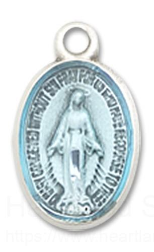 This beautiful charm size Miraculous Medal is a classic way to wear Our Lady. It features a blue enameling over the .925 sterling silver.
