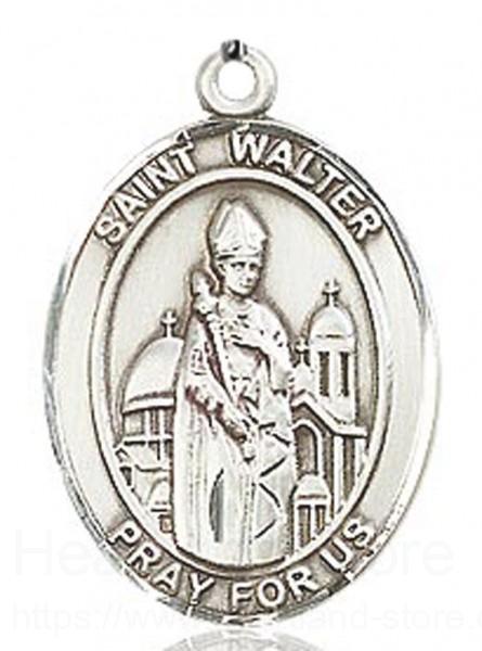 St. Walter of Pontnoise Pendant is made of sterling silver and is approximately the size of a quarter.