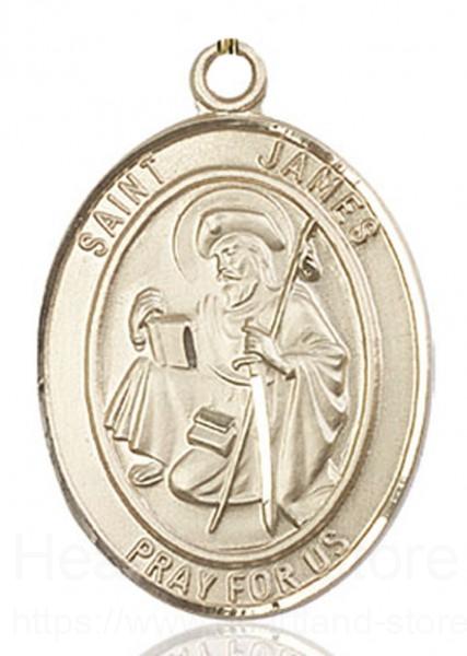 St. James the Greater Medal This St. James the Greater Pendant measures approximately the size of a quarter. All medals are gift boxed in a velvet jewelry box ready for gift giving.
