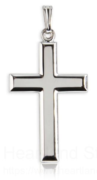What a great way to show your faith with this simple yet powerful cross pendant. The size is perfect for a man to wear. Not huge and not small. The cross has a high polish finish and is made of sterling silver. Features a decorative bale for the chain to thread through on all options.
