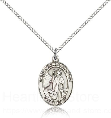 This St. Anthony of Egypt Pendant is made of sterling silver and is approximately the size of a nickel. The jewelry pendant is paired with an 18 inch sterling silver light curb chain as pictured. All medals are gift boxed in a beautiful blue velvet hinged jewelry gift box.
