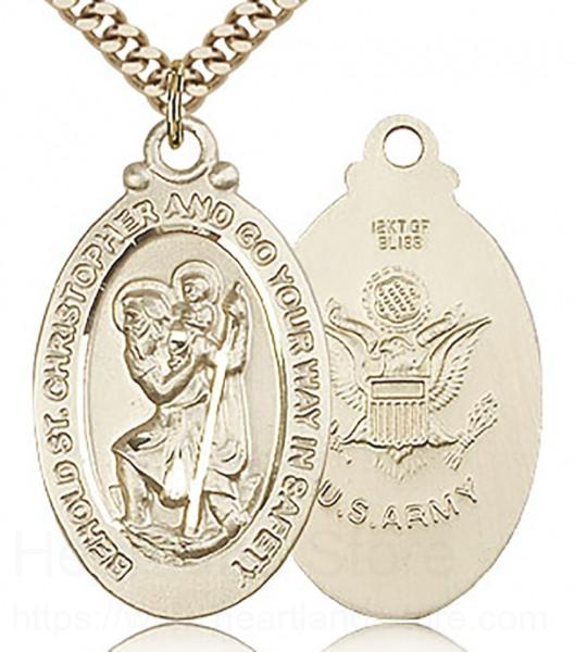 About this St. Christopher Army Medal, Gold Filled + 24" 2.4mm Gold Plated Chain + Clasp