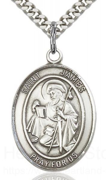 St. James the Greater Medal This St. James the Greater Pendant is made of sterling silver and is approximately the size of a quarter.