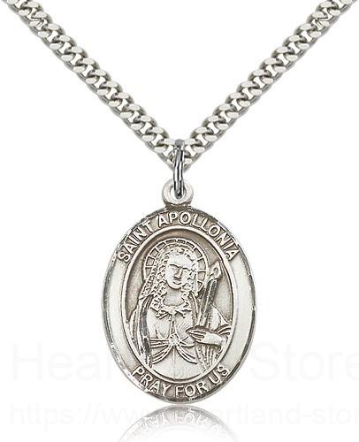 St. Apollonia Medal This St. Apollonia Pendant is made of sterling silver and is approximately the size of a quarter.