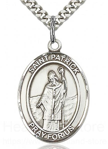 About this St. Patrick Medal, Sterling Silver, Large + 24” 1.7mm Sterling Silver Chain & Clasp