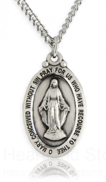 About this Men's Miraculous Medal, Sterling Silver + 24” 1.7mm Sterling Silver Chain & Clasp