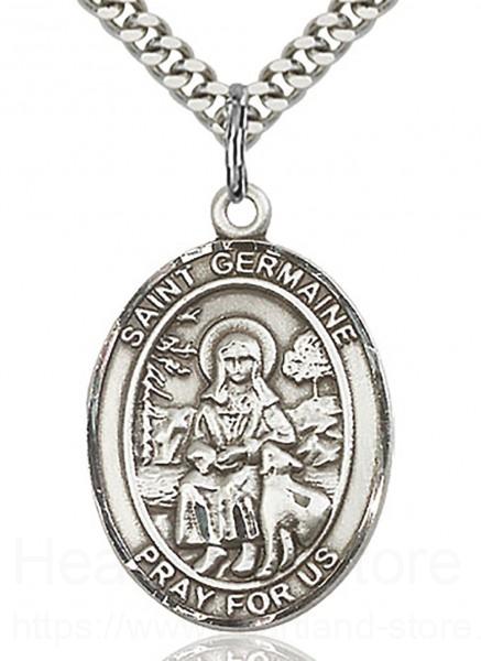 About this St. Germaine Cousin Medal, Sterling Silver, Large + 24" Sterling Silver Chain + Clasp
