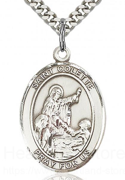 About this St. Colette Medal, Sterling Silver, Large + 24" Sterling Silver Chain + Clasp
