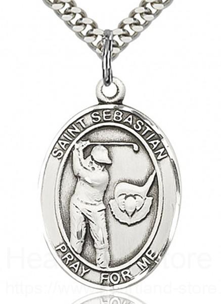 About this St. Sebastian Golf Medal, Sterling Silver, Large + 24" Sterling Silver Chain + Clasp