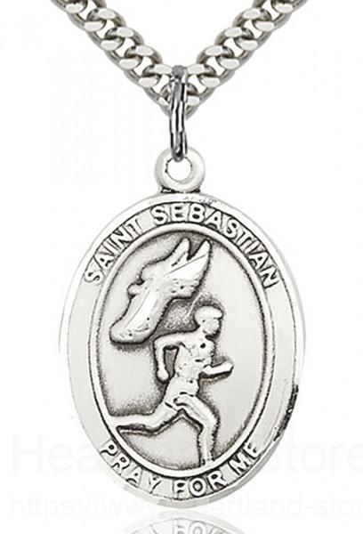 About this St. Sebastian Track and Field Medal, Sterling Silver, Large + 24" Sterling Silver Chain + Clasp
