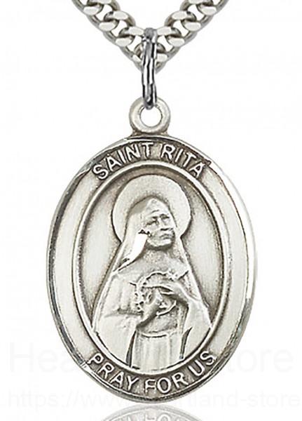 About this St. Rita of Cascia Medal, Sterling Silver, Large + 24" Sterling Silver Chain + Clasp