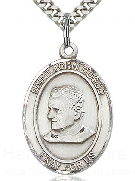 About this St. John Bosco Medal, Sterling Silver, Large + 24” 1.7mm Sterling Silver Chain & Clasp
