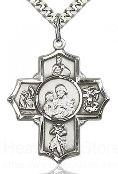 About this 5 Way Cross Firefighter Medal, Sterling Silver + 24” 1.7mm Sterling Silver Chain & Clasp
