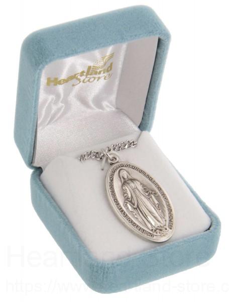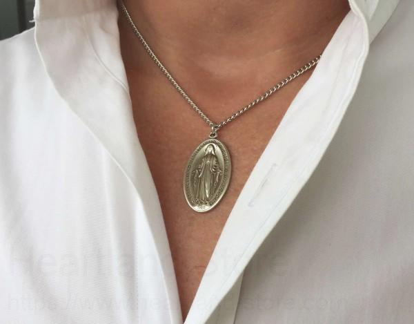 About this Large Men's Deluxe Sterling Silver Oval Miraculous Medal + 24" 3mm Stainless Steel Chain + Clasp