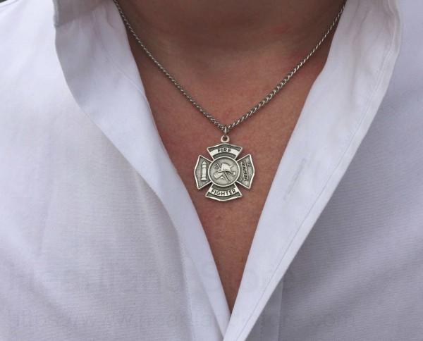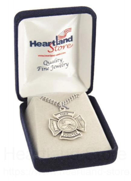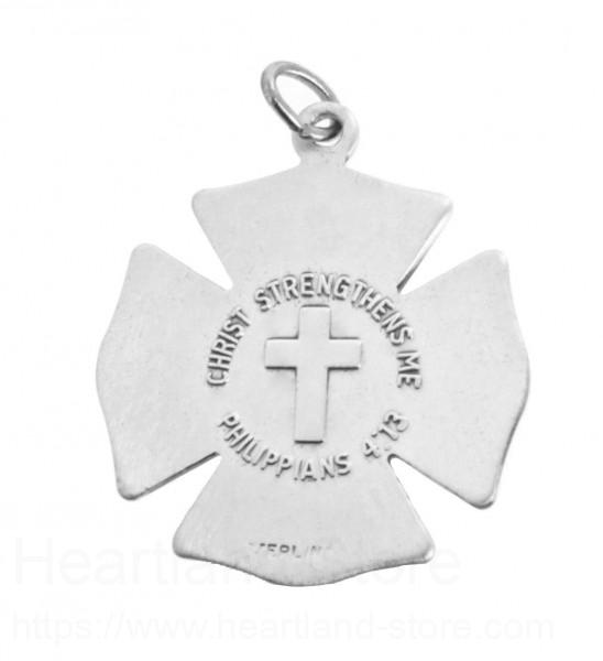 About this Heartland Men's Sterling Silver Firefighter Philippians 4:13 Medal with Cross + 24" Stainless Steel Chain + Clasp