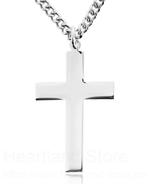 ✞ Men's Sized High Polish Flat Cross Pendant 1 3/16 inch high (excluding top loop) x 13/16 inch wide ✓ Rhodium Plated Genuine .925 Sterling Silver ✓ Comes in multiple chain combinations.