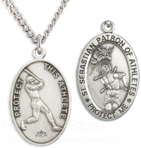 About this Oval Men's St. Sebastian Baseball Necklace With Chain + 24" Sterling Silver Chain + Clasp