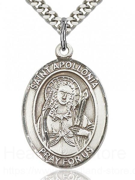 St. Apollonia Medal This St. Apollonia Pendant is made of sterling silver and is approximately the size of a quarter.