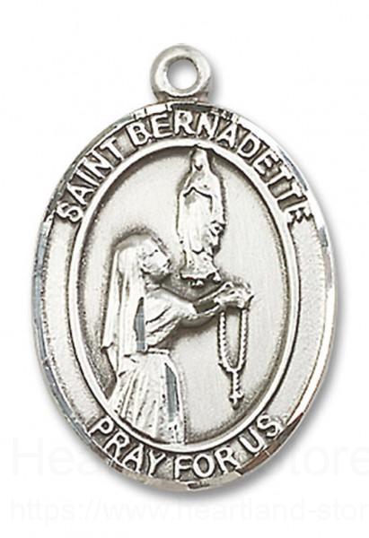 St. Bernadette Medal This St. Bernadette Pendant is made of sterling silver and is approximately the size of a quarter.