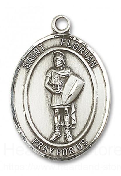 St. Florian Medal This St. Florian Pendant is made of sterling silver and is approximately the size of a quarter.
