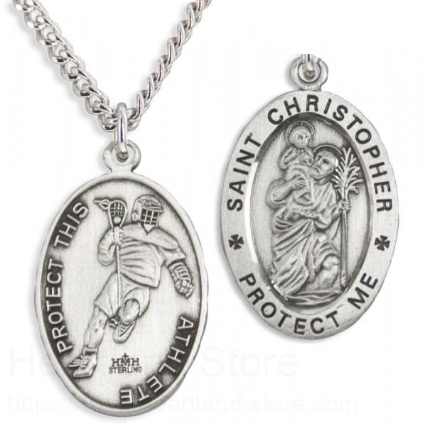 About this Oval Men's Saint Christopher Lacrosse Necklace + 24" Sterling Silver Chain + Clasp