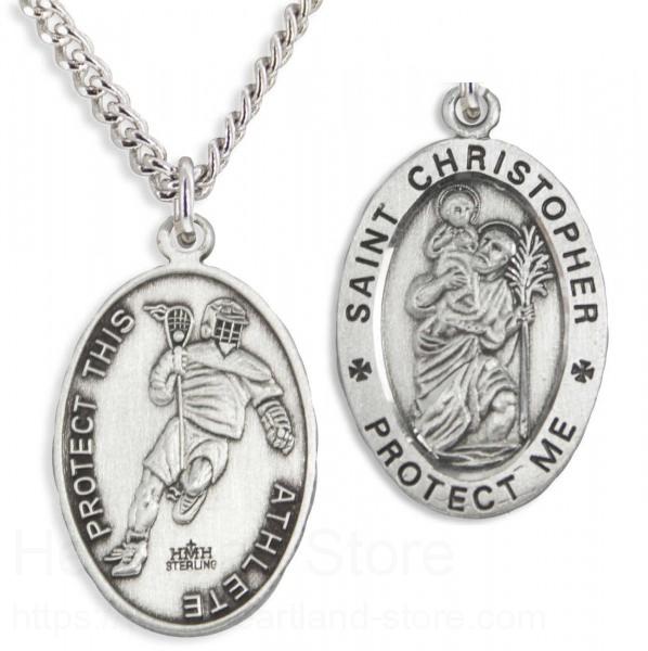 About this Oval Men's Saint Christopher Lacrosse Necklace + 20" 2.2mm Stainless Steel Chain with Clasp