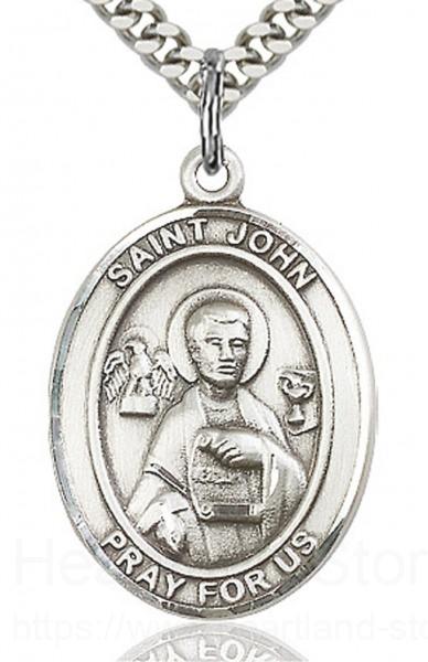 About this St. John the Apostle Medal, Sterling Silver, Large + 24" 2.4mm Rhodium Plate Endless Chain