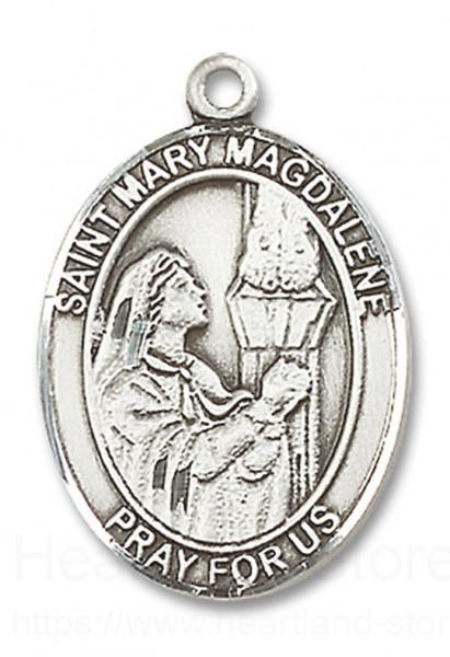 St. Mary Magdalene Medal This St. Mary Magdalene Pendant is made of sterling silver and is approximately the size of a quarter.