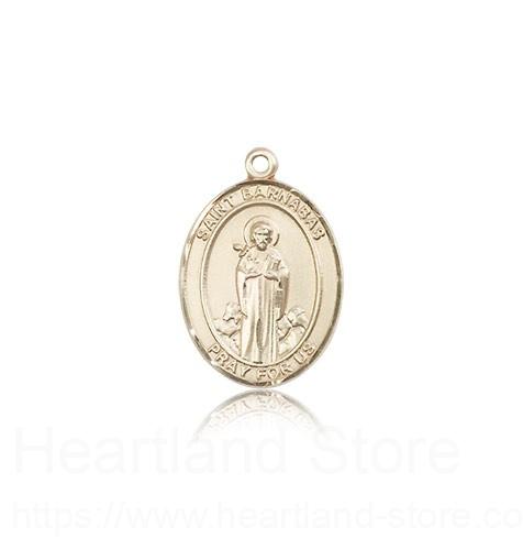 This St. Barnabas Pendant is made of 14 Karat Gold and is approximately the size of a nickel. The jewelry pendant is sold individually and does not come with a chain. All medals are gift boxed in a beautiful blue velvet hinged jewelry gift box.