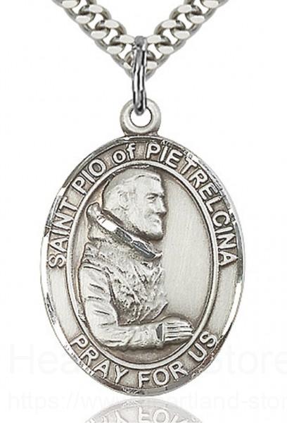 About this St. Pio of Pietrelcina Medal, Sterling Silver, Large + 24" 2.4mm Rhodium Plate Endless Chain