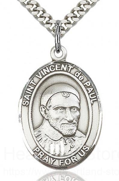 About this St. Vincent de Paul Medal, Sterling Silver, Large + 24" 2.4mm Rhodium Plate Endless Chain
