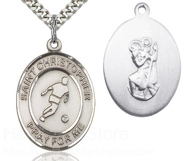 St. Christopher Soccer Medal, Sterling Silver, Large + 24" Sterling Silver Chain + Clasp