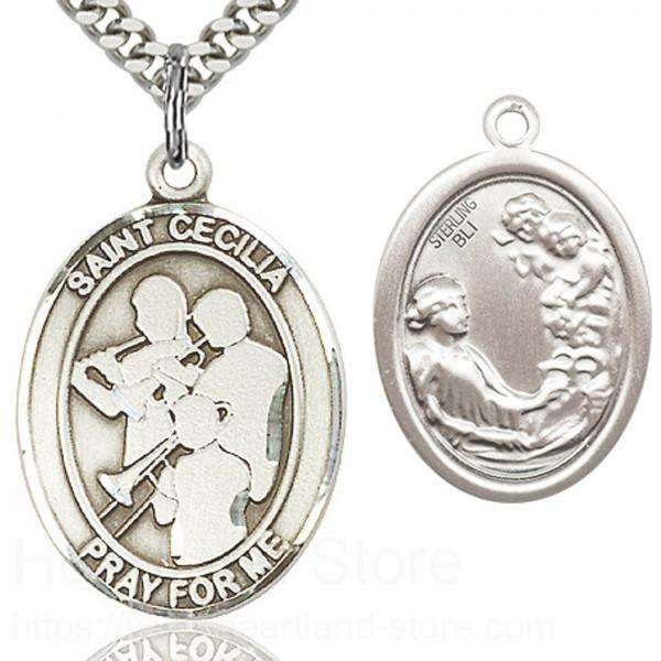 About this St. Cecilia Marching Band Medal, Sterling Silver, Large + 24" 2.4mm Rhodium Plate Endless Chain