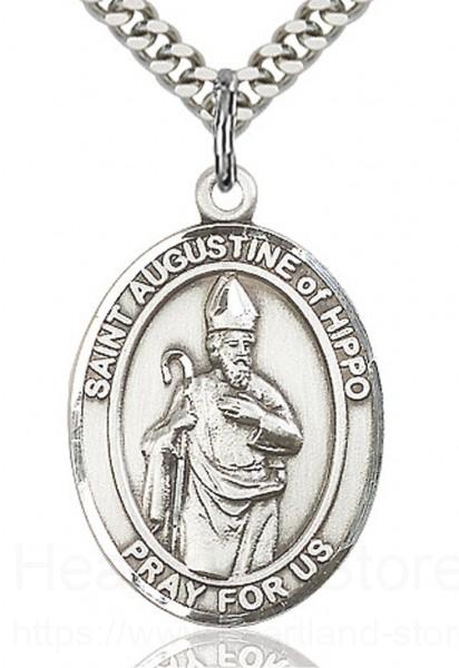 About this St. Augustine of Hippo Medal, Sterling Silver, Large + 24" 2.4mm Rhodium Plate Endless Chain